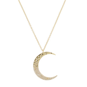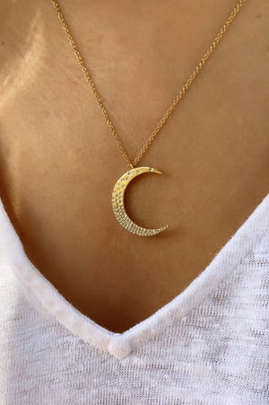 Crescent Moon Necklace With Diamonds in 14k Gold