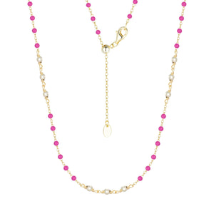 Fun, colorful enamel beaded chain necklace! Now available with sparkle beads for an elevated look. Perfect pop of color for layering. Match your favorite necklace, or do a cool color block!