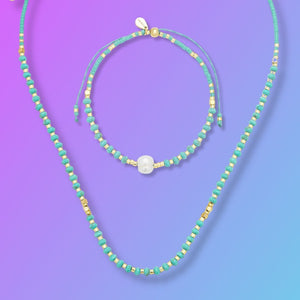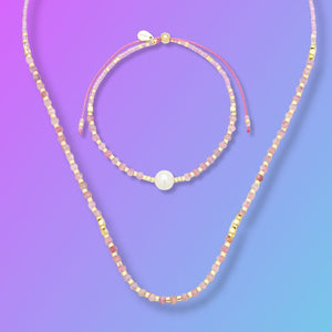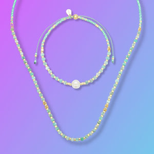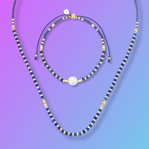 Gift Set | Lumira Necklace with Mini Pearl and Gemstone Adjustable Bracelet