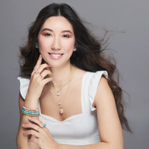 Our sterling silver jewelry is made with 925 silver. To keep the jewelry looking bright and polished, keep all jewelry away from harsh chemicals like household cleaning fluids as they create abrasions and reduce the lustre of the metal. Cleaning silver jewelry is best done with a professional jewelry cleaning product. Thoroughly dry your silver jewelry after exposure to water. Also adhere to all General Care instructions.