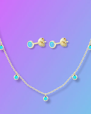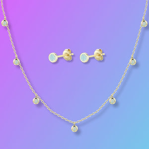 Gift Set | Opal Dew Drops Reversible Layering Necklace with Opal Studs