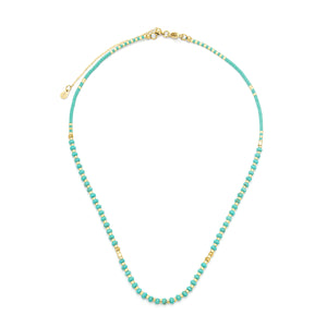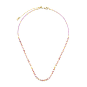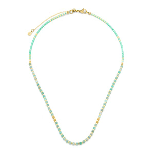 This delicate necklace features a strand of small, faceted gemstones paired with luminous Miyuki beads for a refined yet playful feel. Each bead is chosen for its unique tone and texture, creating a soft, effortless gradient of color across your neckline.