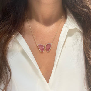 Pink Tourmaline Butterfly Necklace with Diamonds