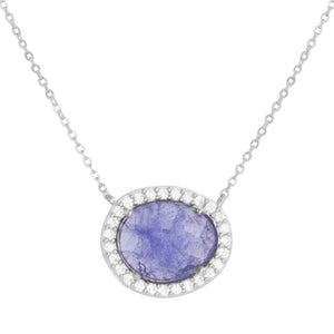 Tanzanite pendant set in 925 Sterling silver. Surrounded by crystal pave.
