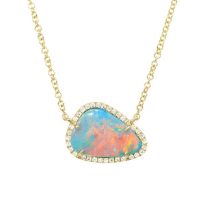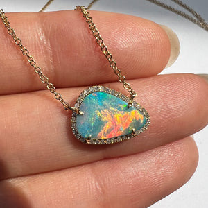 Fire Boulder Opal Necklace With Diamonds - Trillion